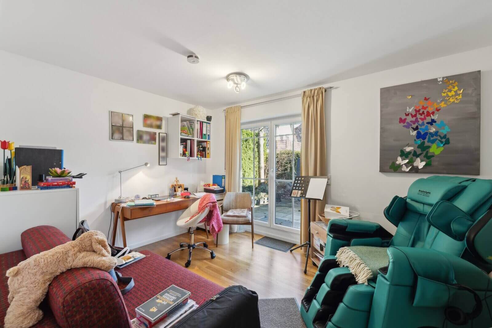 Ein weiteres Highlight ist die zweite Terrasse mit Zugang vom Arbeitszimmer und einem abgeschlossenen Gartenbereich mit einem großen Gartenhaus. Die Wohnung ist derzeit vermietet und erzielt eine Kaltmiete von 1.900 €, wird aber ab dem 1. August 2025 frei.