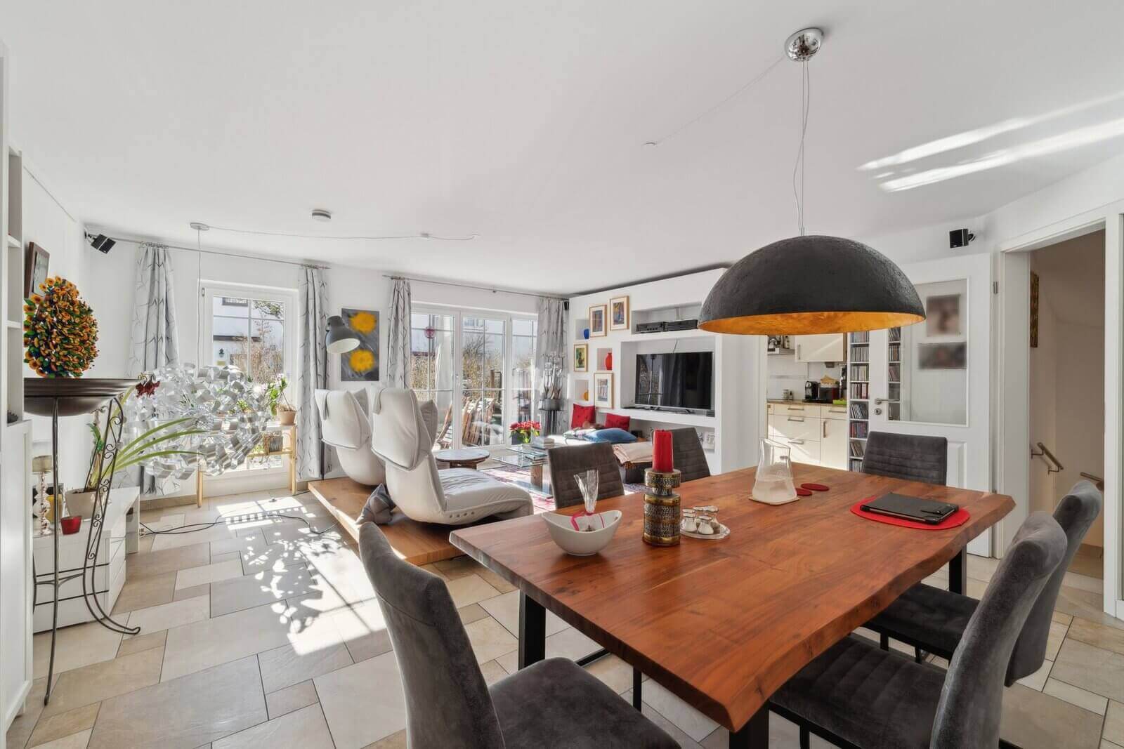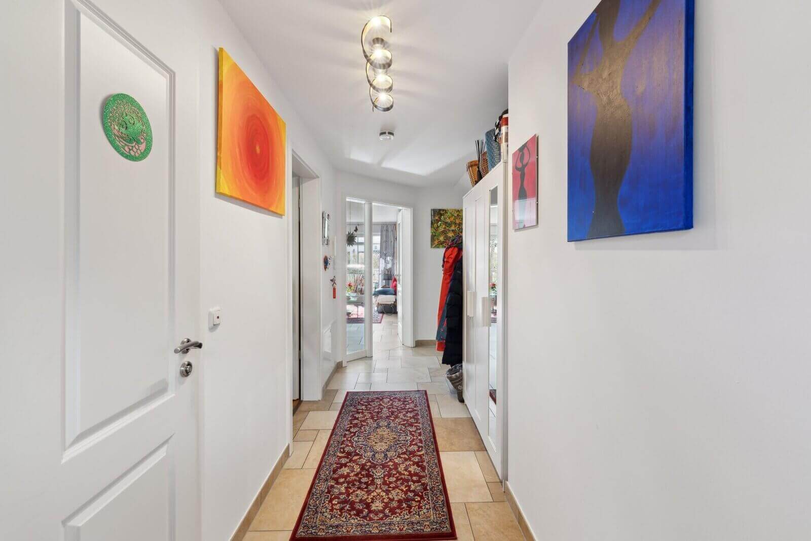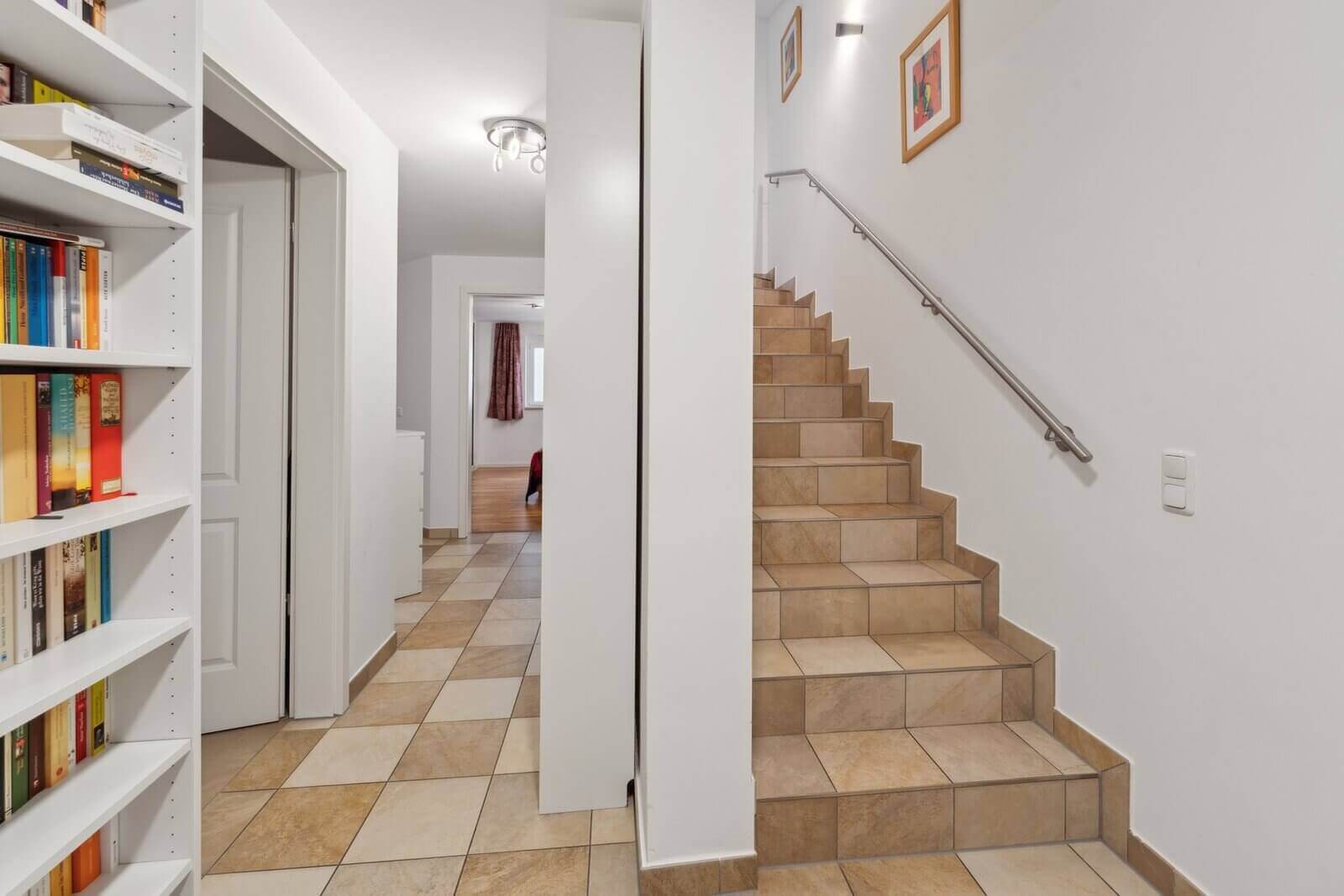 Die Wohnung beeindruckt durch eine hochwertige Ausstattung, die Komfort und Funktionalität vereint. Die Fußbodenheizung mit Einzelraumsteuerung sorgt in allen Räumen für ein angenehmes Klima. Weiße Kunststofffenster mit Rollläden im Erdgeschoss bieten optimalen Sonnenschutz und Energieeffizienz.