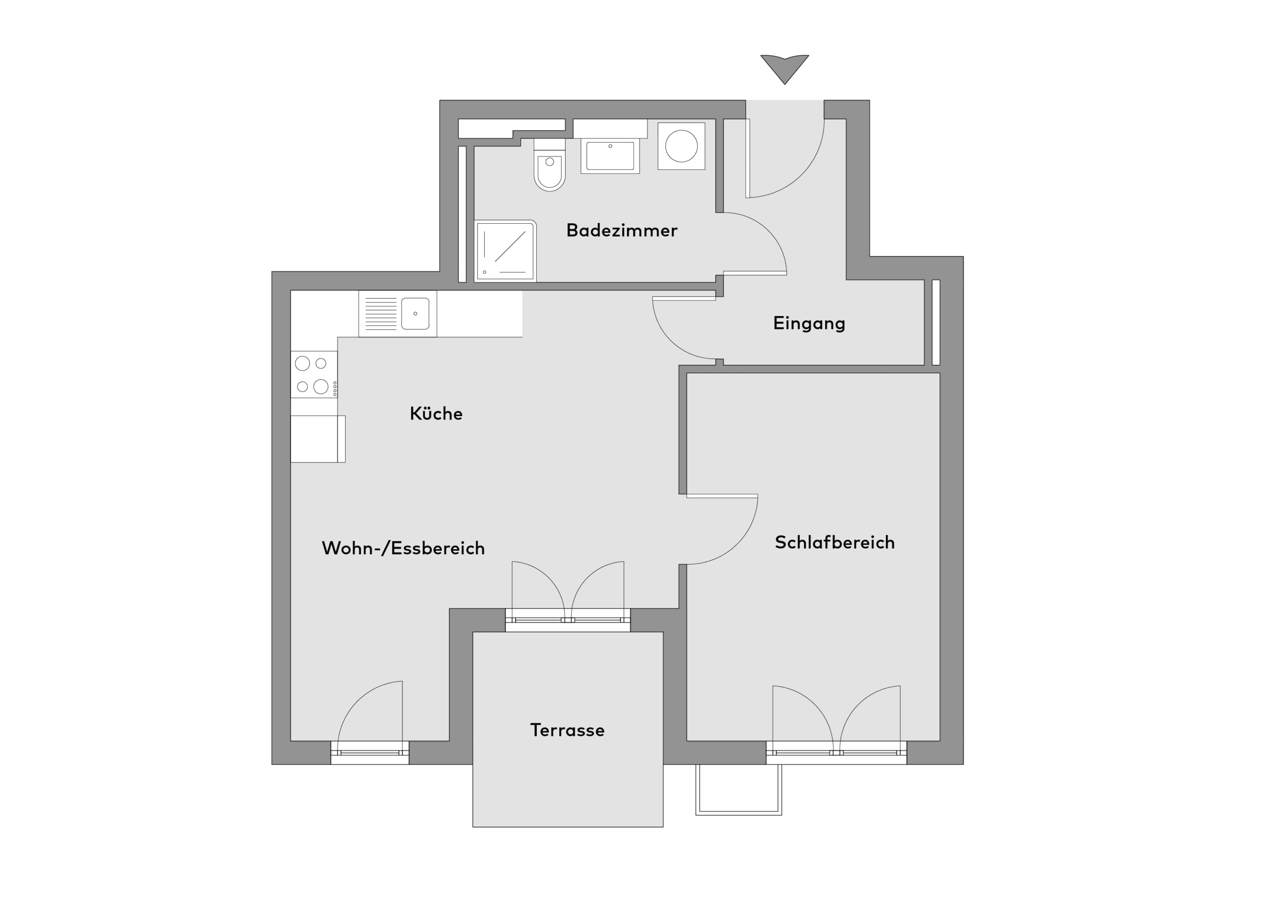 Auf rund 54 m² Wohnfläche bietet die Wohnung einen hellen Wohn- und Essbereich mit offener Einbauküche, ein ruhiges Schlafzimmer, ein modernes Duschbad mit Waschmaschinenanschluss sowie einen Eingangsbereich mit Abstellmöglichkeit.
