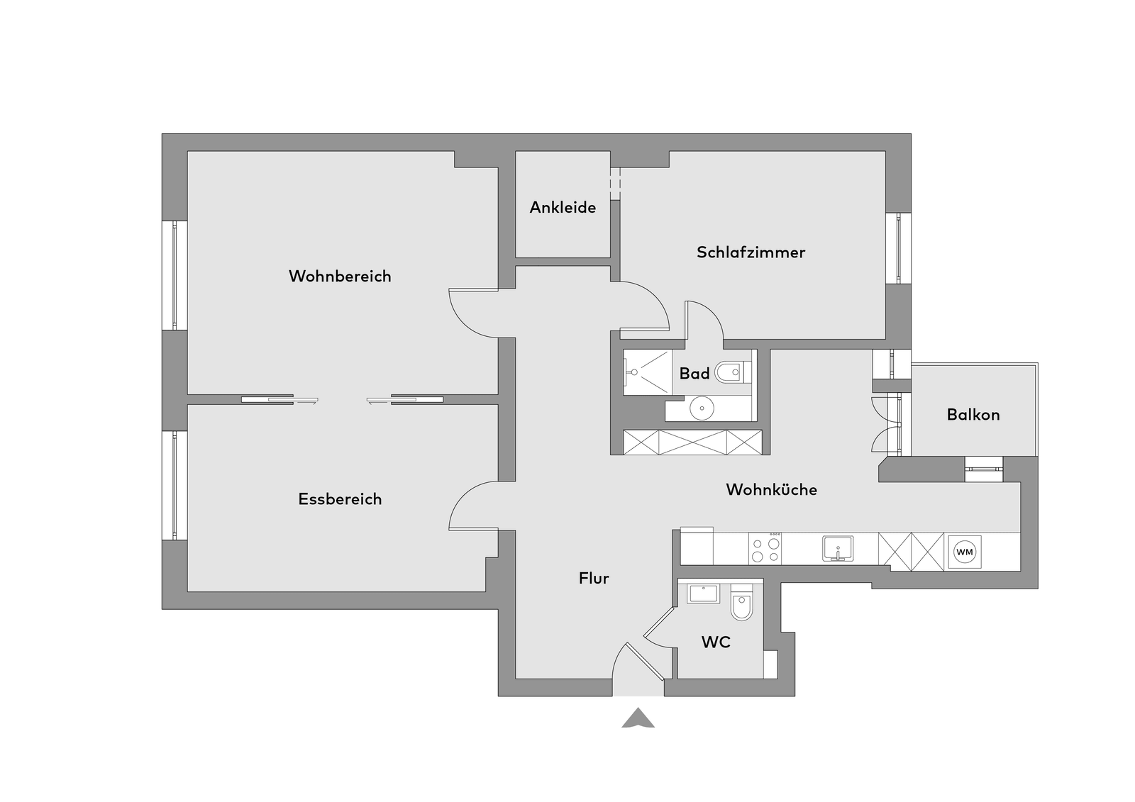 Der überdachte Balkon mit Ostausrichtung öffnet sich zum begrünten Innenhof und schafft einen ruhigen Rückzugsort. Der gemeinschaftlich nutzbare Garten, ein Kellerabteil sowie Fahrradabstellmöglichkeiten im Haus runden das Angebot ab.