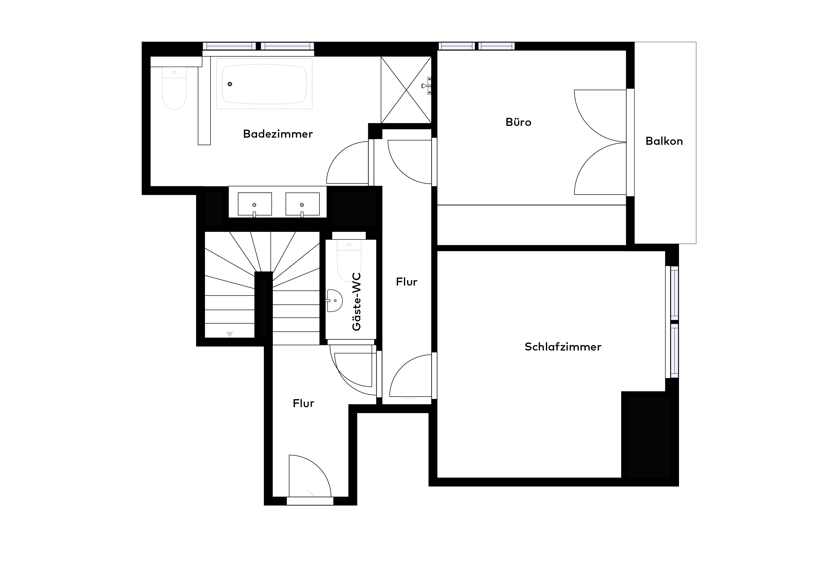 Das Penthouse überzeugt durch eine umfassende Palette an exquisiten Details und höchsten Wohnkomfort. In der ersten Etage befinden sich ein Badezimmer und ein Gäste-WC. Das Badezimmer überzeugt durch eine Italienische Dusche und eine Balneo-Badewanne. Eines der beiden Schlafzimmer verfügt über ein integriertes Ankleidezimmer nach Maß, das Luxus und Organisation vereint. Ein weiteres Schlafzimmer beinhaltet einen Einbauschrank und Zugang zum Balkon, für den perfekten Morgenkaffee.