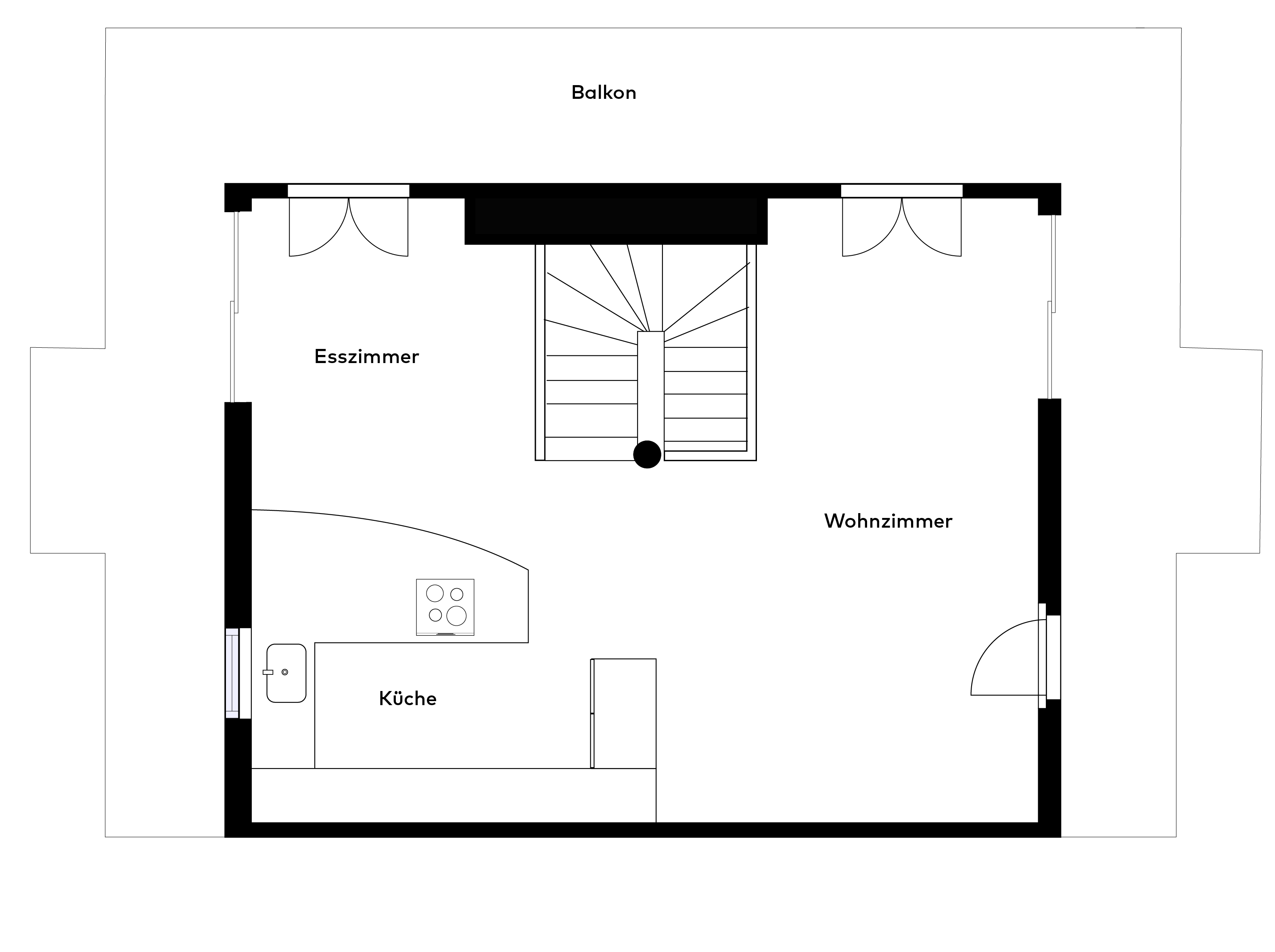 In der zweiten Etage befindet sich ein beeindruckendes Wohnzimmer von über 50 m² mit einem Essbereich und offener Küche, die nahtlos in den Wohnbereich übergehen. Von dort aus gelangt man auf einen weiteren, geräumigen Balkon, der den Innenraum mit dem Außenbereich verbindet.