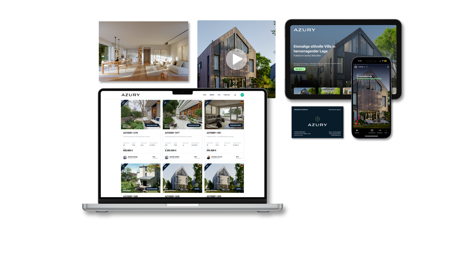 Individuelles Marketing sowohl für dich als auch deine Immobilien. Von eigenen Flyern, über Visitenkarten bis hin zu Visualisierungen, Zeitschriftenanzeigen oder professionellen Videos.